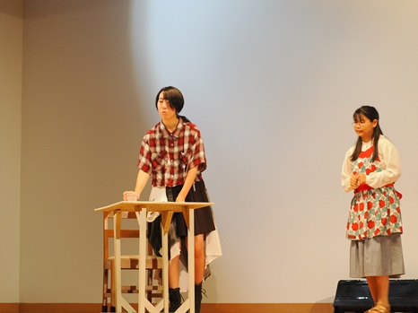 続いて上演されたのは『レストラン』(脚本・演出:21HR 石川莉奈さん)。シェフと見習いが働く少し寂れたレストランに、ちょっと風変わりな作曲家が現れるところから物語が展開します。コミカルなやり取りの中に、人と人とのつながりの大切さを感じさせる温かい作品でした。