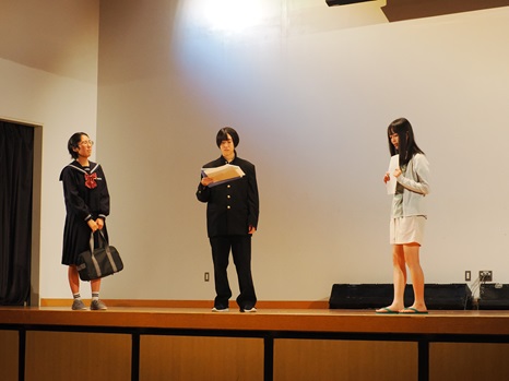 最初の作品は『作戦』(脚本・演出:17HR 大石紗也華さん)。学校生活を舞台に、友人関係に悩む高校生の日常を通して、仲間との絆や前向きに生きる力を描いた作品でした。