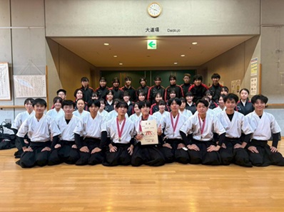 本校弓道部は、全国大会出場を目標に、日々練習に励んできました。これまでの半年間の努力を胸に、選手たちは一射一射に思いを込めて試合に臨みました。女子は勝負の後半で的中を伸ばせず、惜しくも敗退。しかし、その悔しさを受け継いだ男子チームが奮闘し、見事決勝リーグへ進出。リーグ戦では2勝1敗の成績を収め、堂々の準優勝!本校として初の全国大会〈団体の部〉出場を決めました。