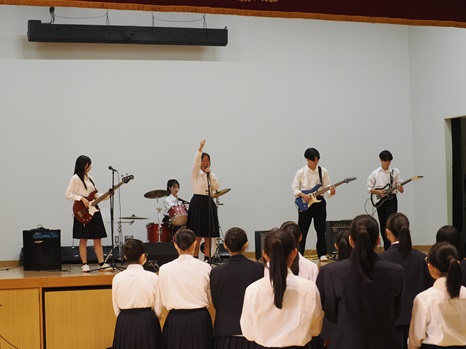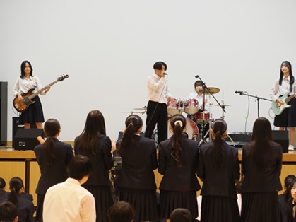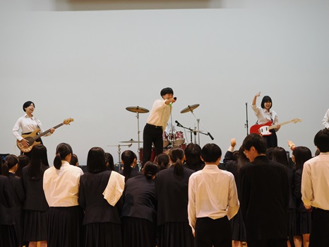 今年は、1年生3バンド、2年生4バンドが日替わりで登場。それぞれが個性あふれるステージを披露し、観客を魅了しました。手拍子や歓声が響く中、受験勉強の合間に訪れた3年生の姿も見られ、音楽を通して学年を超えた一体感が生まれました。改めて、音楽の持つ力や、仲間とともに創り上げる喜びの大きさを感じる時間となりました。