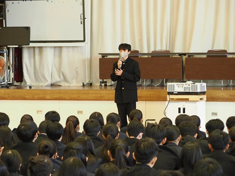2年生は本日、期末テスト終了後に修学旅行に向けた 結団式 を行いました。修学旅行は、グローバル教育の一環 として実施され、来週 の12月1日から4泊5日で台湾へ 出発します。行程は 台北コース と 台南・台北コース の2ルートに分かれ、それぞれの目的に合わせた研修を展開します。現地では姉妹校である 国立台南第一高級中学 との学校交流をはじめ、台湾留学生と協働で取り組む 班別研修 など学びと交流が盛りだくさんです。結団式終了後には、学校交流の場で披露する歌の練習も実施しました。生徒たちは期待に胸を膨らませている様子でした。