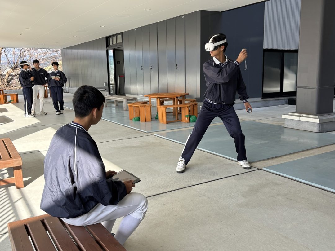 これは、DXハイスクール事業で今年度取り組んでいる、DXとデータサイエンスを活用したトレーニングの一環です。今年度、本校野球部は「V-BALLER」というサービスを導入し、バーチャルトレーニングを実践しています。