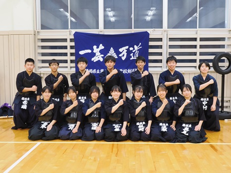 県大会に向けて、部員一丸となって練習に励んできました。1月2日(金)には本校にて初稽古を行い、OBや地域の方々にもご参加いただき、温かい激励のお言葉をいただきました。