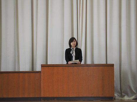 続いて行われた終業式では、森谷校長より、この一年の生徒たちの成長と努力を称えるとともに、今後への期待についてのお話がありました。校歌斉唱をもって式を締めくくり、その後、教務課・生徒課からの連絡、さらに台南交換留学報告会が行われました。